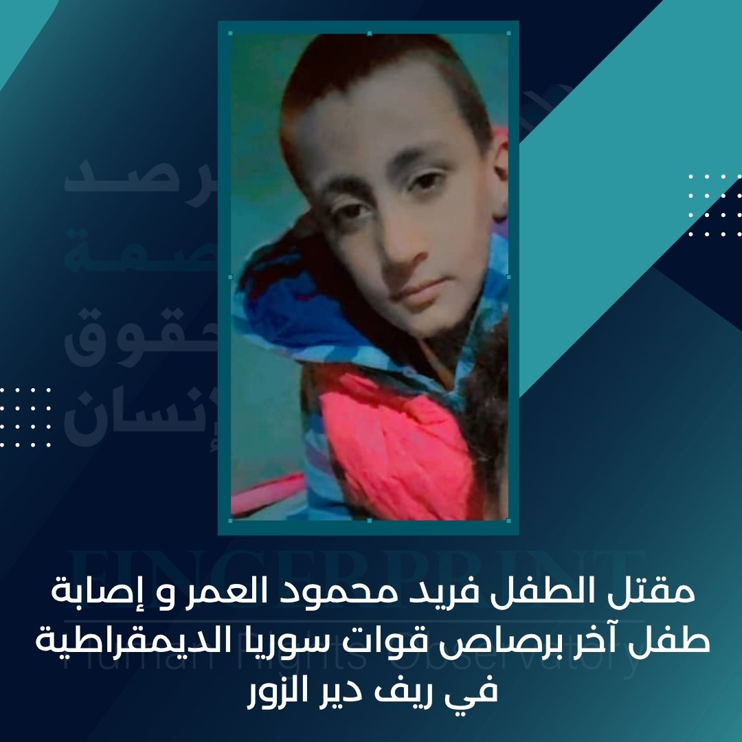 مقتل الطفل فريد محمود العمر و إصابة طفل آخر برصاص قوات سوريا الديمقراطية في ريف دير الزور
